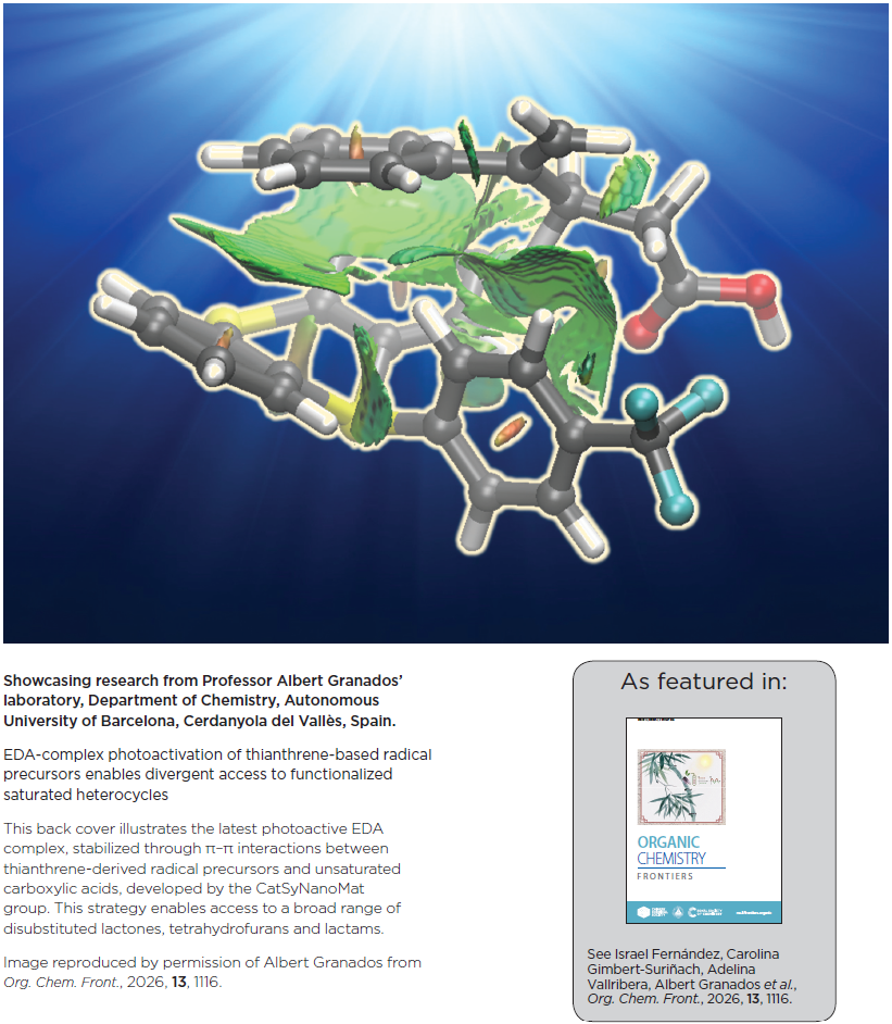 We’re happy to start 2026 by presenting our new report on the use of thianthrenium salts for the synthesis of valuable heterocycles. A visible-light-driven strategy based on a novel EDA complex enables efficient access to a broad range of lactones and tetrahydrofurans, including challenging alkyl and aryl substrates. We also report the first example of iminothianthrenes in EDA-complex-driven photochemistry. Check out the full article in Organic Chemistry Frontiers. Congratulations to everyone!