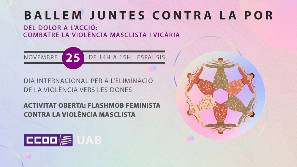 El 25 de novembre, Dia Internacional per a l’Eliminació de la Violència vers les Dones, volem transformar el dolor i la indignació en força col·lectiva. Per això, des de CCOO UAB organitzem una activitat oberta a tota la comunitat universitària: una flashmob feminista per visibilitzar la nostra lluita contra la violència masclista.