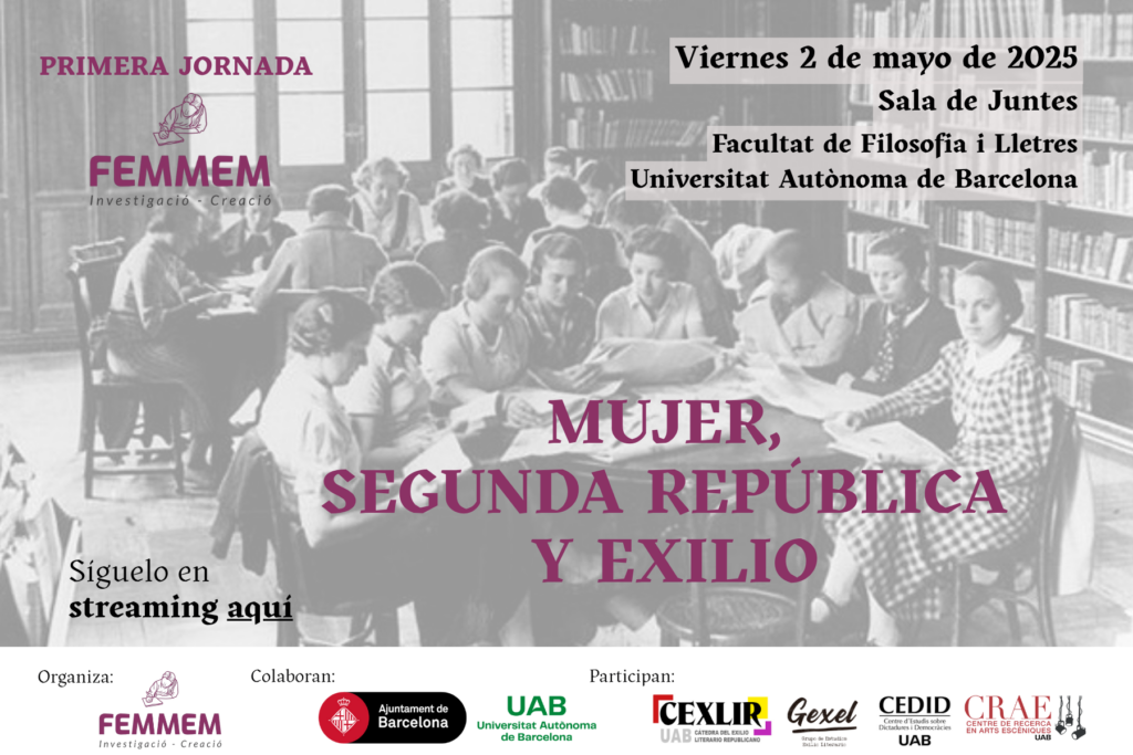 Organitzen: Grupo de Estudios del Exilio Literiario (GEXEL), Centre d’Estudis sobre les Èpoques Franquista i Democràtica (CEFID-UAB) i Grupo de Estudios de