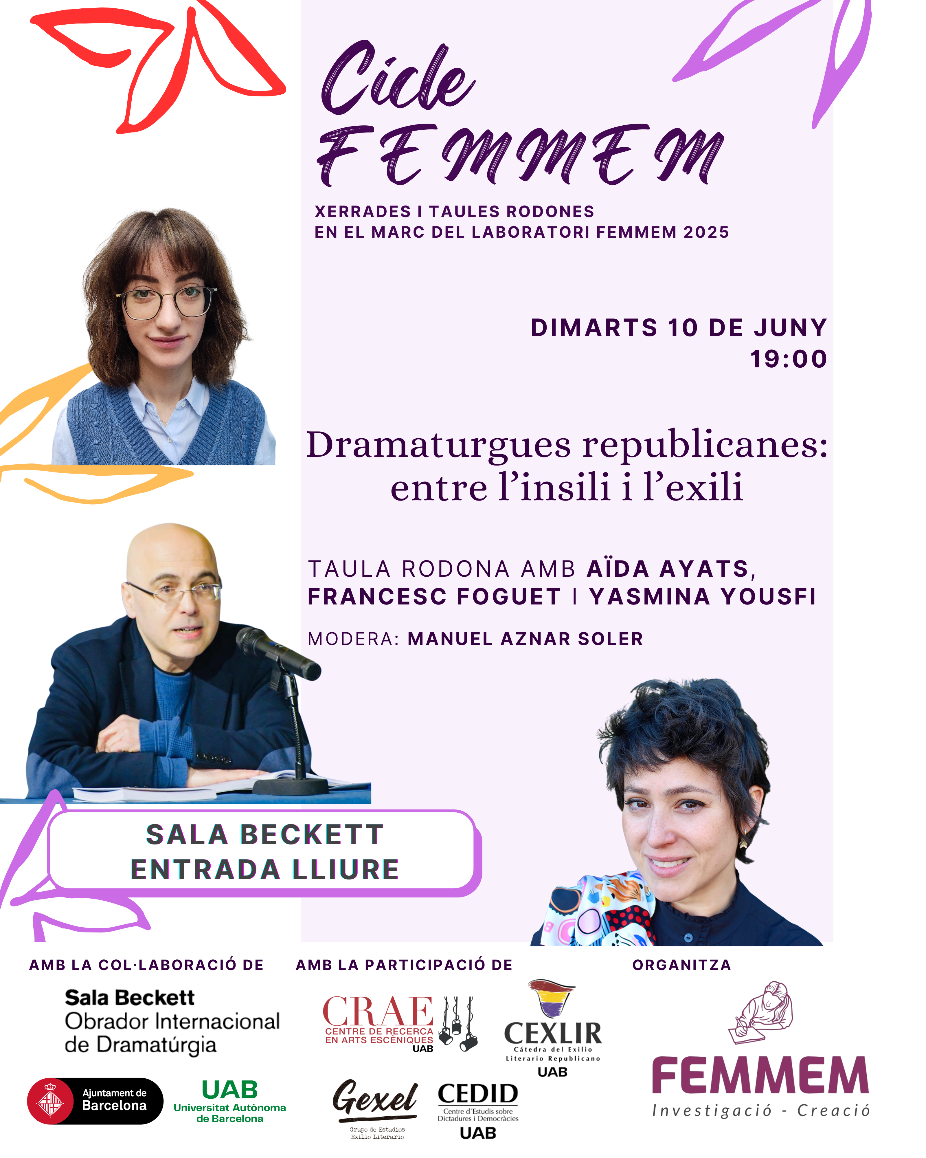 Organitzen: Organitzen: Grupo de Estudios del Exilio Literiario (GEXEL), Centre d’Estudis sobre les Èpoques Franquista i Democràtica (CEFID-UAB) i Fundación Max Aub