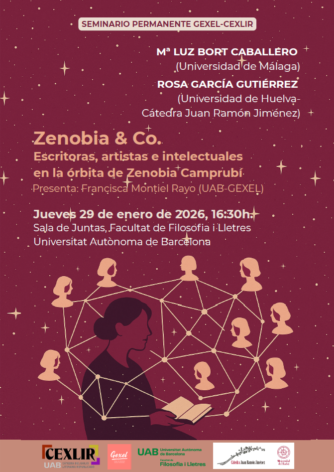A càrrec de Mª Luz Bort Caballero (Universidad de Málaga) i Rosa García Gutiérrez (Universidad de Huelva – Cátedra Juan Ramón Jiménez); presenta Francisca Montiel Rayo (UAB-GEXEL-CEDID).