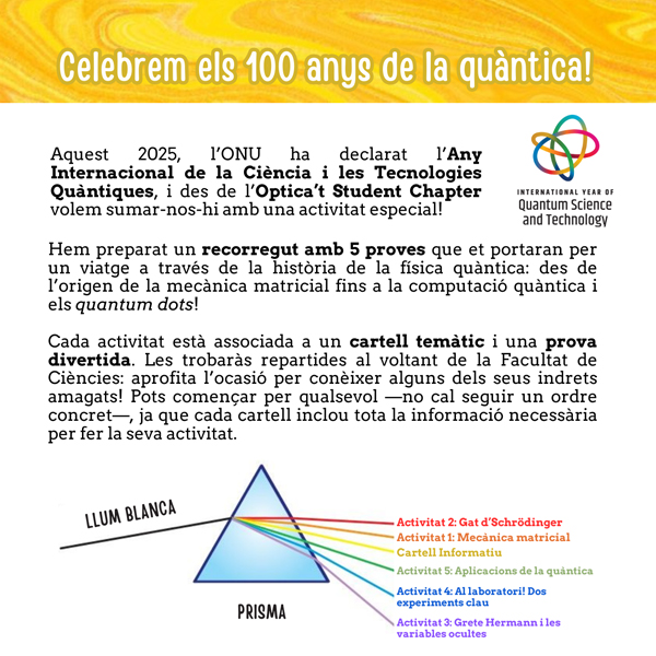 Al llarg del 2025 es celebra l’Any Internacional de la Ciència i la Tecnologia Quàntiques (IYQ) que reconeix els 100 anys transcorreguts des del desenvolupament inicial de la mecànica quàntica.