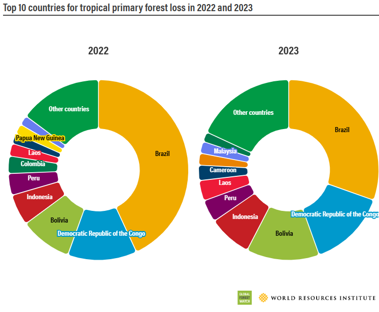 La desforestació, impulsada principalment per l’expansió de conreus i pastures per alimentar bestiar, expulsa comunitats indígenes i nadiues que depenen del bosc per al seu sustenteniment, ja que, segons dades del World Resources Institute (2024), cada dia es perden prop de 14.400 camps de futbol de bosc, fet que a més agreuja la pèrdua de biodiversitat i accelera el canvi climàtic.
