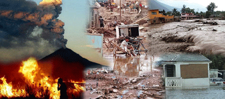 Els desastres geofísics, com els terratrèmols, els tsunamis i les erupcions volcàniques, són fenòmens naturals sense intervenció humana que provoquen desplaçaments interns; no obstant això, segons l’IDMC (Centre de Monitoratge de Desplaçaments Interns, Noruega), aquests esdeveniments representen només una petita part del total de desplaçaments forçats per desastres naturals.