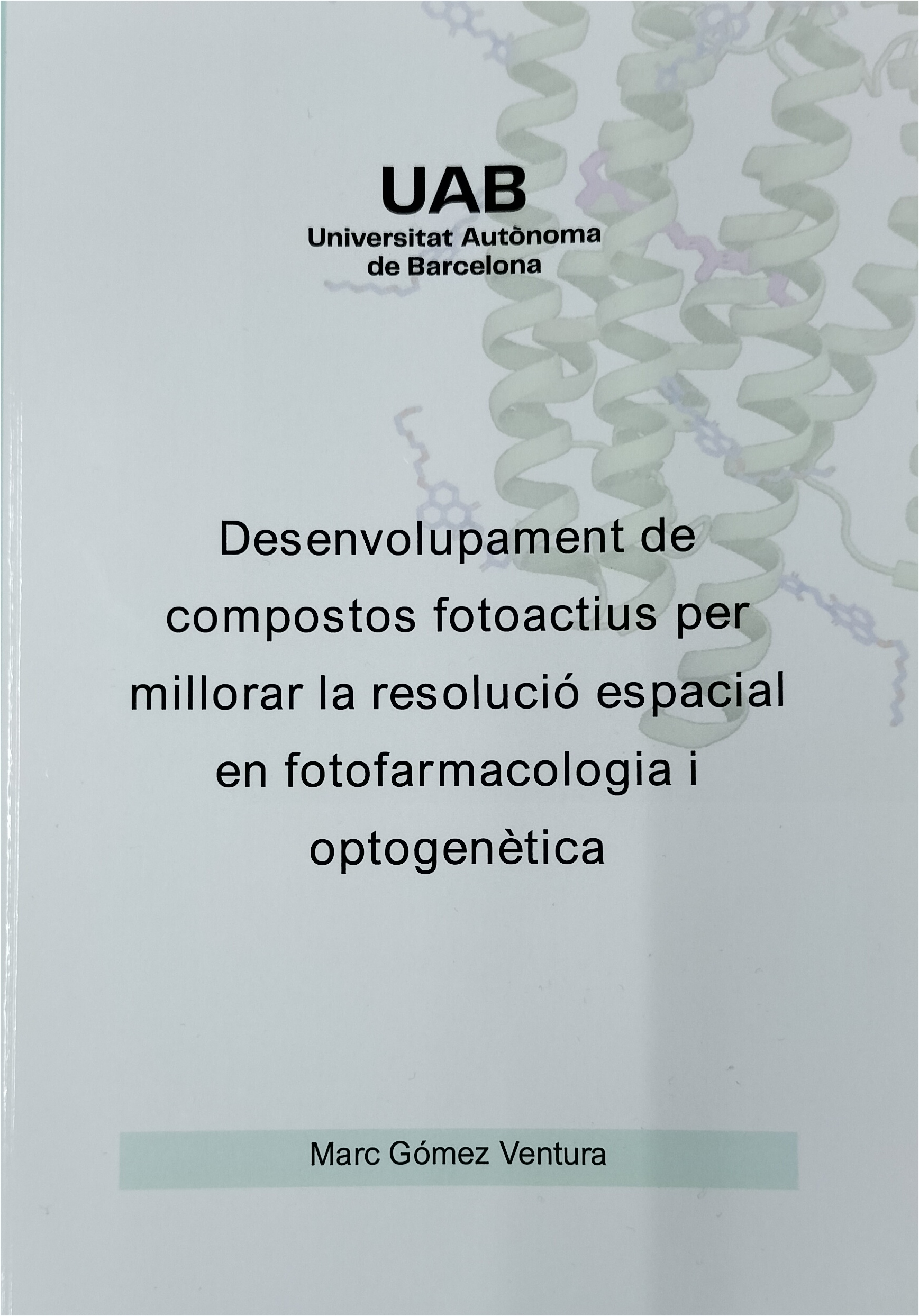 Marc Gómez (2025) Desenvolupament de compostos fotoactius per millorar la resolució espacial en fotofarmacologia i optogenètica Supervisors: Prof. Ramon Alibés (UAB), Prof. Félix Busqué (UAB), Prof. Jordi Hernando