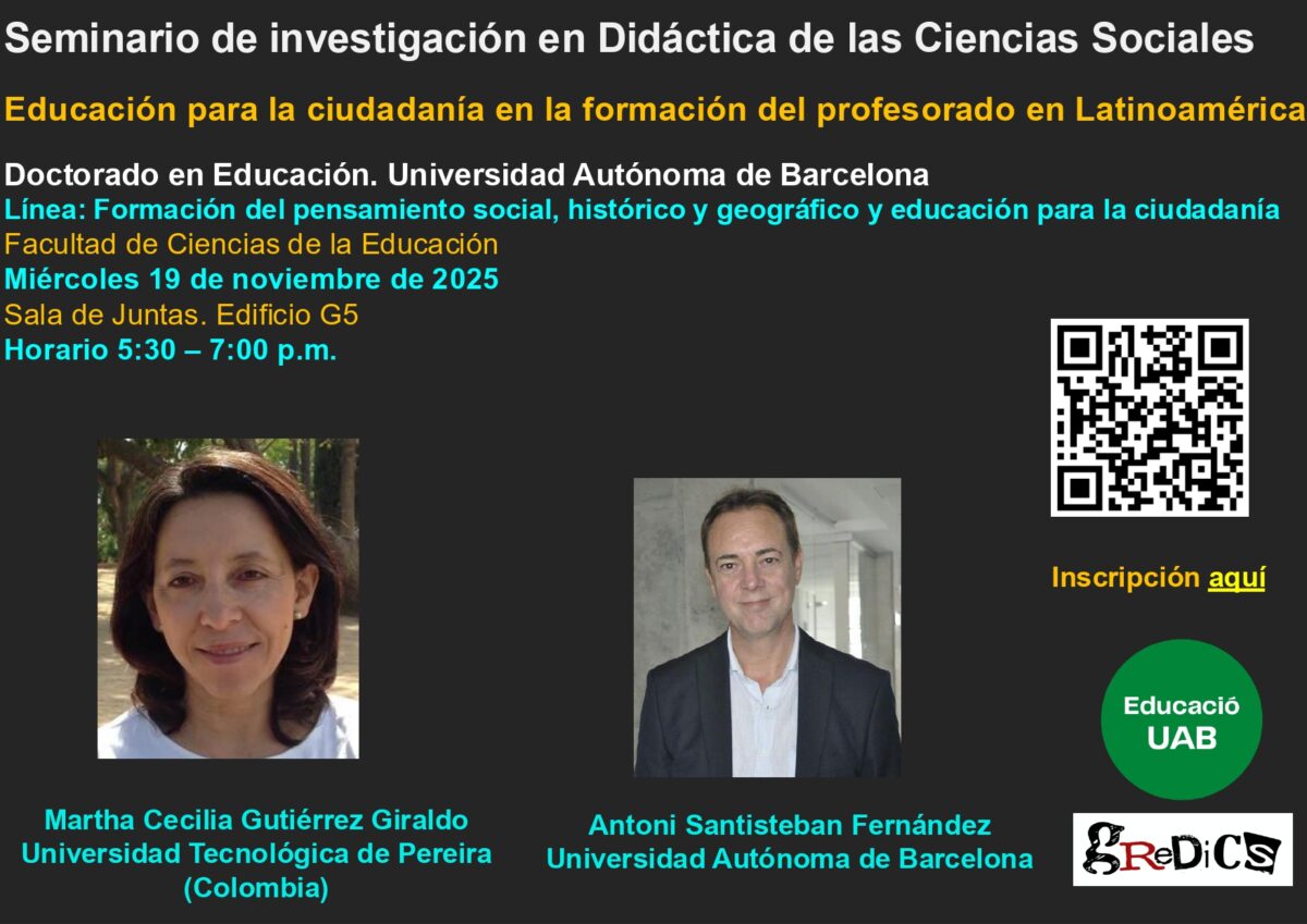 El proper dimecres 19 de novembre es portarà a terme el seminari Educació per a la ciutadania a la formació del professorat a Llatinoamèrica, conduit per la Dra. Martha Cecilia Gutiérrez Giraldo de la Universidad Católica de Pereira (Colombia) La sessió es realitzarà a la Sala de Juntes de l’edifici G5 de la Facultat d’Educació […]