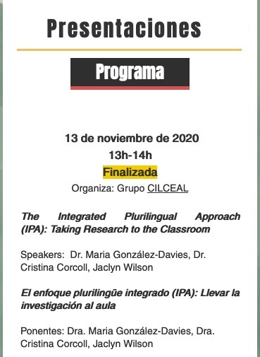 La Dra. Luci Nussbaum, membre honorària del grup GREIP, va fer una presentació en línia dins del Cicle de Sessions Formatives 2020 del Programa de Doctorat en Educació de la UAB, àmbit de didàctica de la llengua i la literatura. La presentació, titulada “Estudiar pràctiques plurilingües als centres educatius”, va presentar diverses experiències de recerca […]