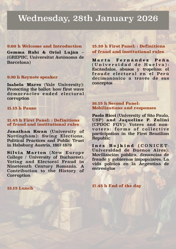 Workshop internacional “Electoral Fraud and Political Distrust: Entanglements and New Perspectives of Study in Modern Times (c. 1750–c. 1950)” (28-29/01/2026)