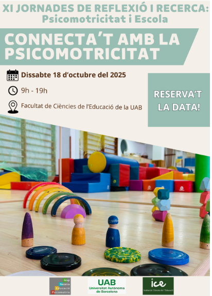 El próximo 18 de octubre de 2025 se llevarán a cabo las undécimas jornadas de reflexión e investigación: Psicomotricidad y escuela colabora el ICE de la Universidad Autónoma de Barcelona.