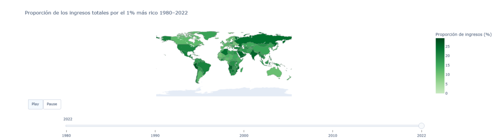 Proporción de los ingresos totales por el 1% más rico 1980-2022