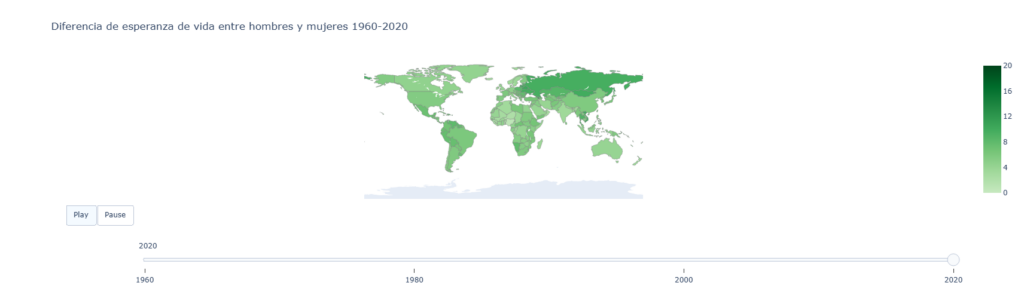 Diferencia de Esperanza de Vida entre hombres y mujeres 1960-2020