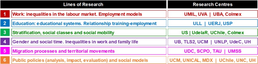 The INCASI2 project of comparative analysis of social inequalities is organised through 6 main thematic axes which in turn form as many thematic research groups (TRGs) that are coordinated by various principal investigators responsible for the European beneficiary universities and Latin American and Caribbean partners.