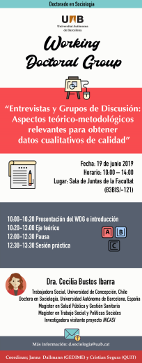 Fecha: Miércoles 19 de Junio, 2019.10.00 a 14.00h. Lugar: Sala de Juntes de la Facultat de Ciències Polítiques i Sociologia. Universidad Autònoma de Barcelona.