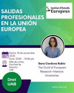 - Xerrada “Sortides professionals a la Unió Europea”El proper 10 de novembre de 2025, l’Institut d’Estudis Europeus de la UAB organitza una sessió dedicada a orientar els i les estudiants sobre les oportunitats professionals en l’àmbit de… Més informació: Xerrada “Sortides professionals a la Unió Europea”