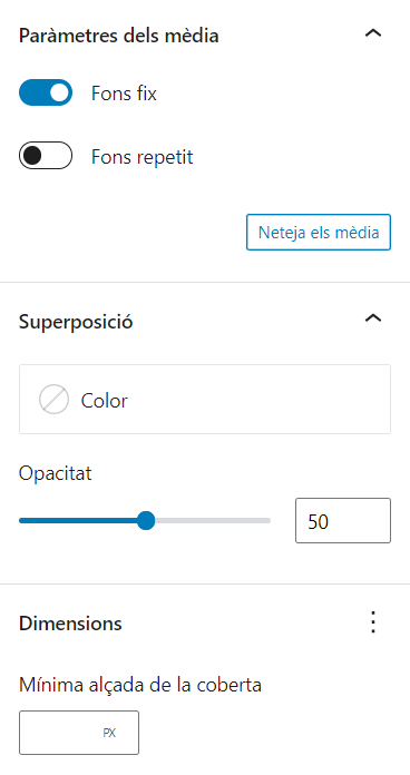 A més, en seleccionar el bloc, a la barra lateral es mostren les opcions de configuració: