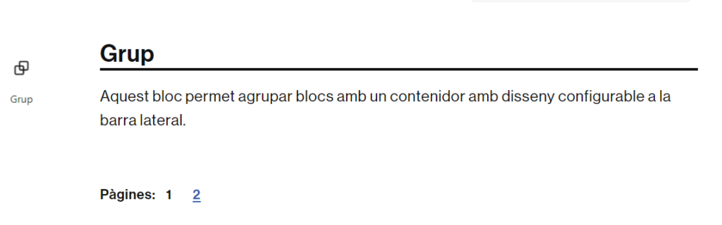 Aquest bloc permet agrupar blocs amb un contenidor amb disseny configurable a la barra lateral.
