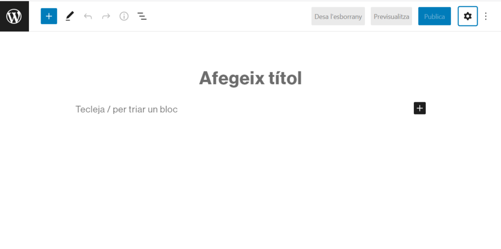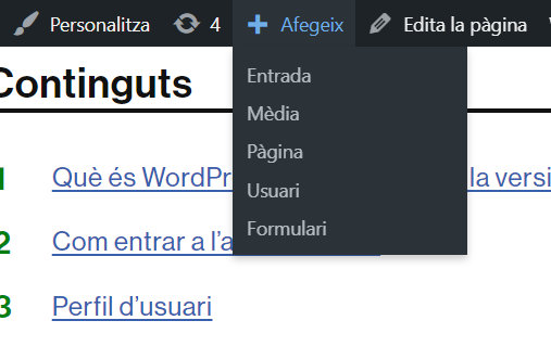 Podeu crear una pàgina o una entrada, anant a l’opció corresponent del menú superior Afegeix.