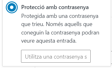 - Protecció amb contrasenya: visible només per aquells que coneguin la contrasenya, que haureu d’introduir al camp corresponent.