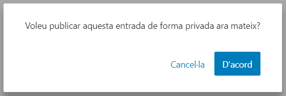 - Privada: visible només per a administradors i editors del web. En seleccionar aquesta opció, us demanaran confirmació.