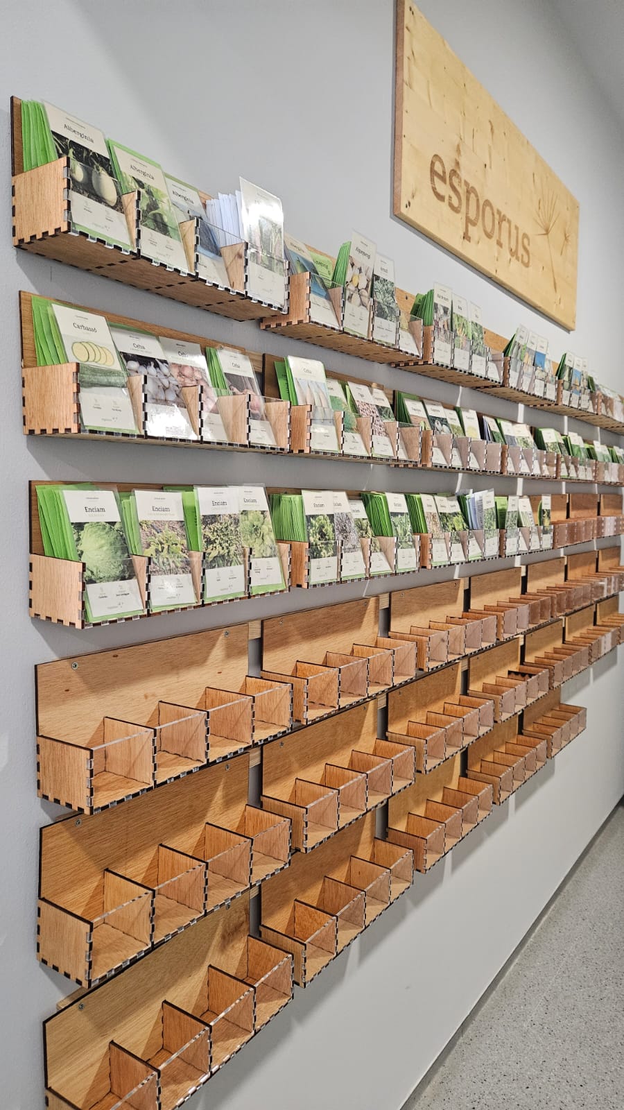 En aquest cas, el banc s’ha dissenyat i fabricat amb tecnologia de tall làser, una eina que permet crear estructures modulars i personalitzades amb gran precisió. El tall làser facilita la construcció d’espais compartimentats per a l’etiquetatge i l’emmagatzematge ordenat de llavors, adaptant el mobiliari a les necessitats específiques del banc, amb un resultat resistent i funcional.