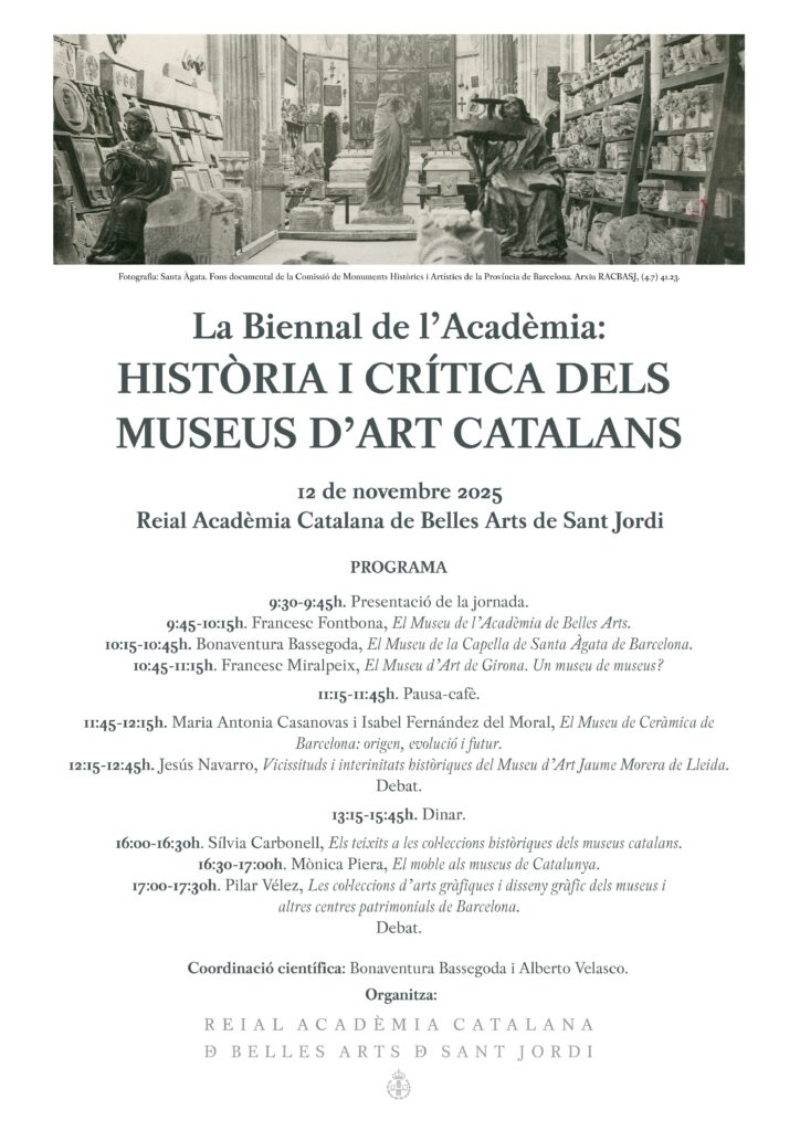 En aquesta primera edició de la Biennal de l’Acadèmia, i atès que el museu de la Reial Acadèmia Catalana de Belles Arts de Sant Jordi és el degà dels museus catalans, s’abordaran qüestions diverses al voltant de la història i crítica d’aquestes institucions cabdals de la cultura del país. Els ponents convidats desenvoluparan aspectes inèdits o poc treballs al voltant de la gènesi i història dels museus que abordaran, tots ells de llarga trajectòria i amb col·leccions rellevants que han contribuït a conservar, investigar i difondre.