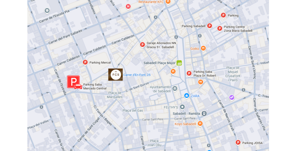 | Parking Saba Mercat Central Sabadell 📍Carrer de Colom, 2, 08201, Sabadell | Parking Saba Plaça Dr. Robert Sabadell 📍Carrer del Pedregar, 8, 08202, Sabadell |