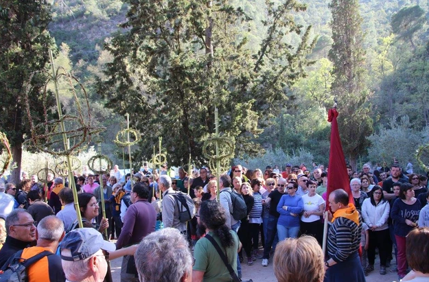 El segon temps ritual està marcat pel trajecte cap a l’ermita, que suposa un pas simbòlic de la foscor de la nit a la claror del dia. L’estada a l’ermita de Sant Francesc representa la bonança col·lectiva: la figura del sant i el bordó (bastó de pelegrí) esdevenen símbols de protecció i guia espiritual.