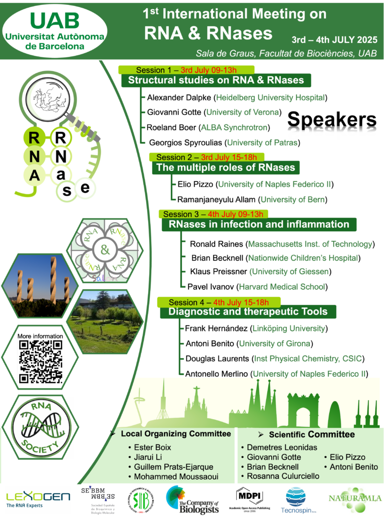 I’m thrilled to share that I had the honor of attending the 1st International Meeting on RNA & RNases, held on July 3–4, 2025, at the Universitat Autònoma de Barcelona de Barcelona (UAB) in beautiful Barcelona, Spain