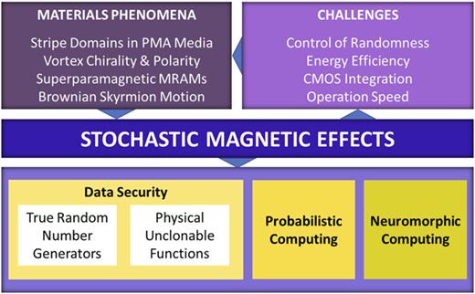 Random phenomena are ubiquitous in magnetism. They include, for example: the random orientation of magnetization in an assembly of non-interacting isotropic magnets; arbitrary maze domain patterns in magnetic multilayers with out-of-plane anisotropy, random polarization, and chirality of an array of magnetic vortices; or Brownian skyrmion motion, among others. Usually, for memory applications, randomness needs to be avoided to reduce noise and enhance stability and endurance. However, these uncontrolled magnetic effects, especially when incorporated in magnetic random-access memories, offer a wide range of new opportunities in, e.g., stochastic computing, the generation of true random numbers, or physical unclonable functions for data security. Partial control of randomness leads to tunable probabilistic bits, which are of interest for neuromorphic computing and for new logic paradigms, as a first step toward quantum computing.
