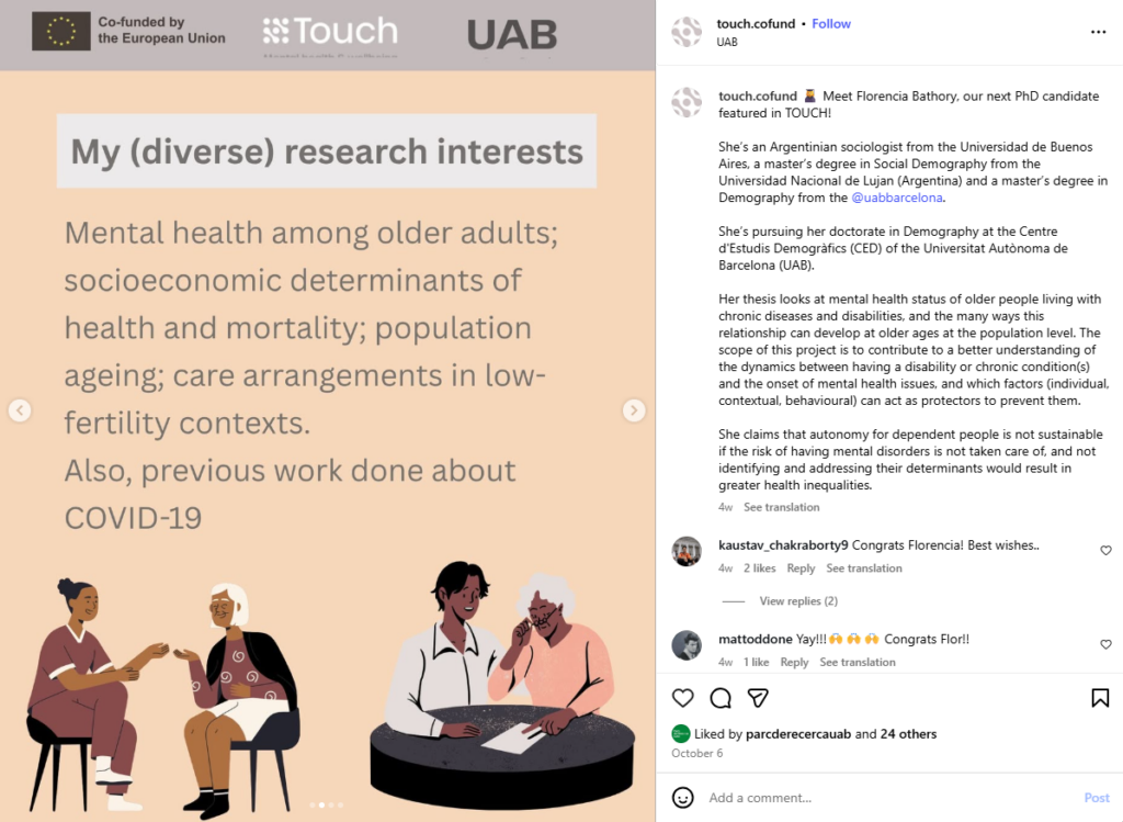My project focuses on the mental health status of people living with chronic diseases and disabilities. Besides the transition among health states, we will focus on how social determinants, living arrangements and care networks contribute to the well-being of dependent individuals.