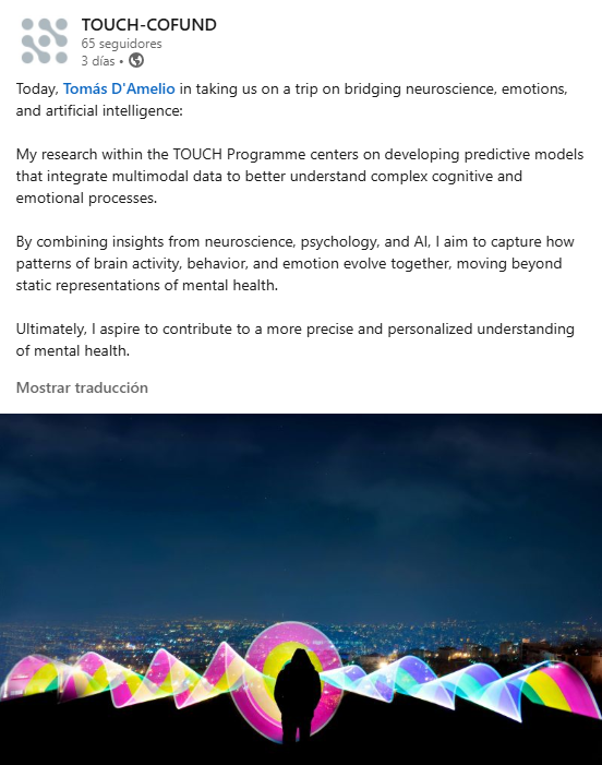I hold a Bachelor’s degree in Psychology from the University of Buenos Aires, an MSc in Data Mining from the University of Buenos Aires, and an MSc in Cognitive Science from the École Normale Supérieure (Paris). I have completed research stays at the University of Barcelona, INRIA (Paris) and Aarhus University (Denmark), focusing on the interplay between neuroscience, emotions and AI. I have also gained teaching experience in various academic institutions and international organisations, including the Neuromatch Academy.